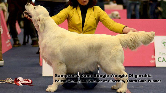 These two phenomenal show dogs are both full-brothers and littermates to Sampson. First we have King (Del Omari Szczesliwy Slon). He was the Puppy World Winner at the 2017 World Dog Show in Germany. It is the largest dog show in the world with over 31,000 dogs entered... so being the Puppy World Winner is kind of a big deal. Next is Rio (D. Monogram Szczesliwy Slon), he already holds five champion titles.